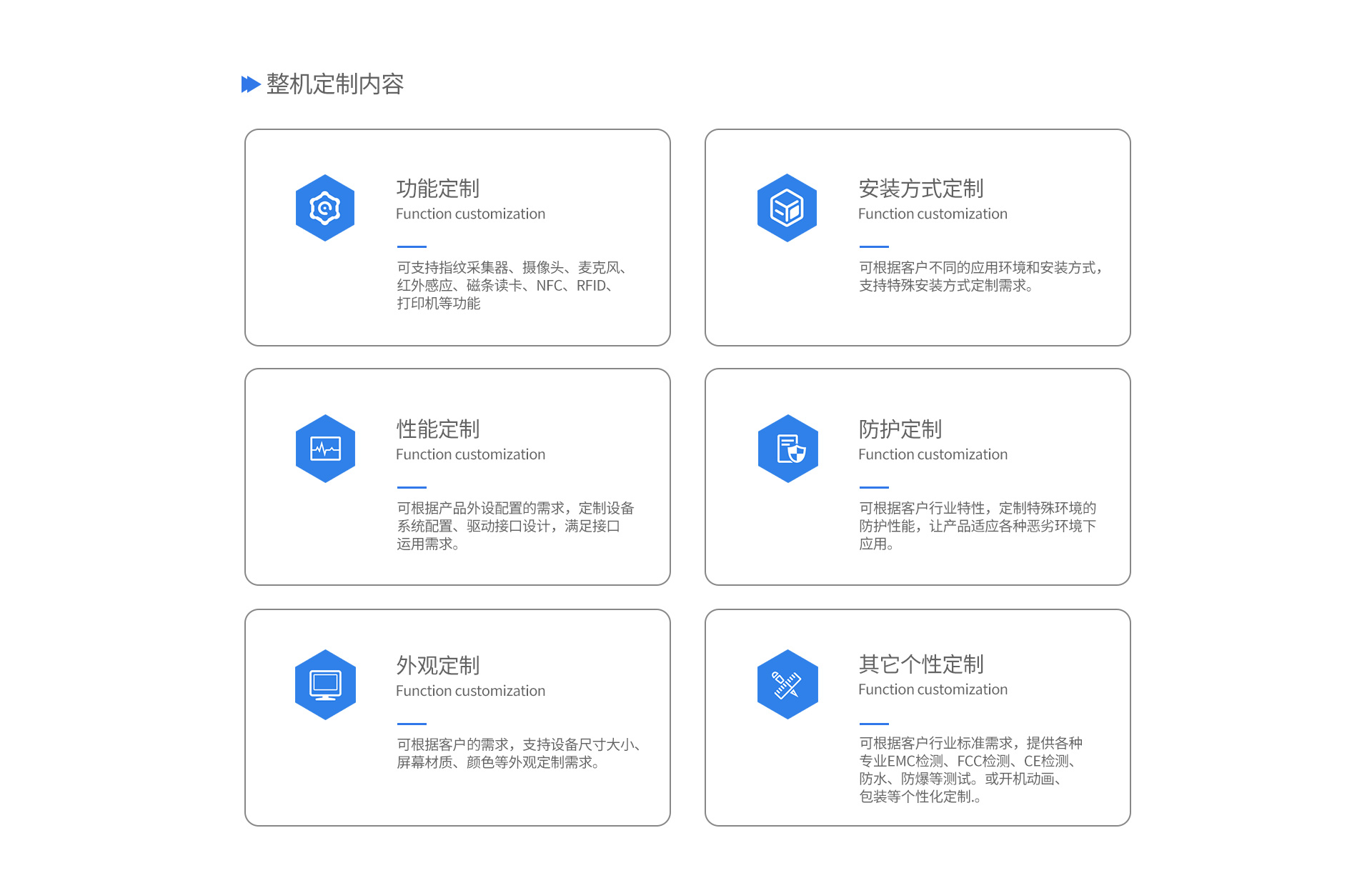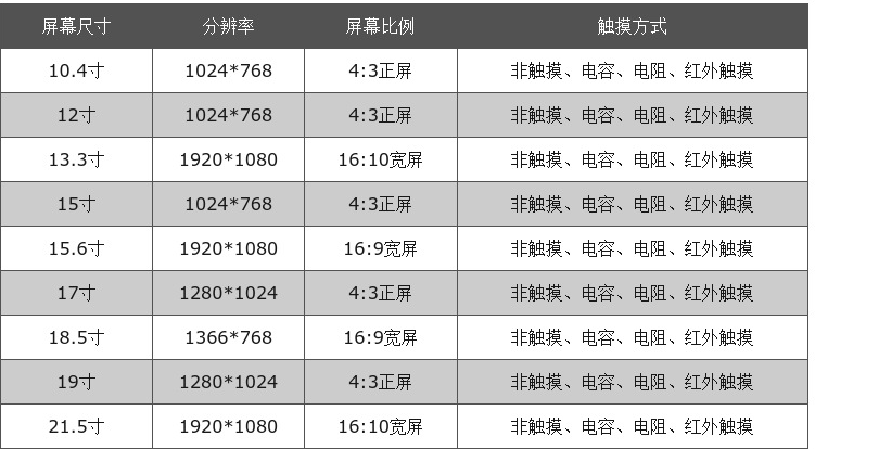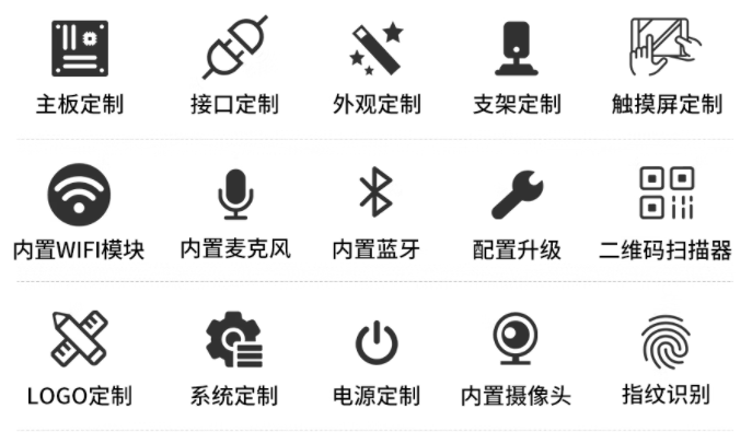 支持屏幕控制方式(非觸摸/電容觸摸/電阻觸摸屏幕等),以及高分屏/高亮屏/防爆屏/全視角屏/防眩光屏/寬溫屏/防窺屏等不同屏幕的定制