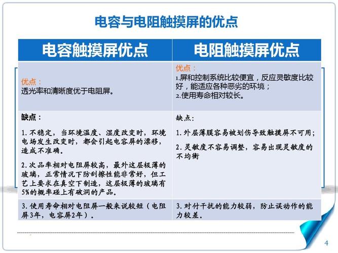 電容觸摸屏和電阻觸摸屏之間存在多個主要差異: